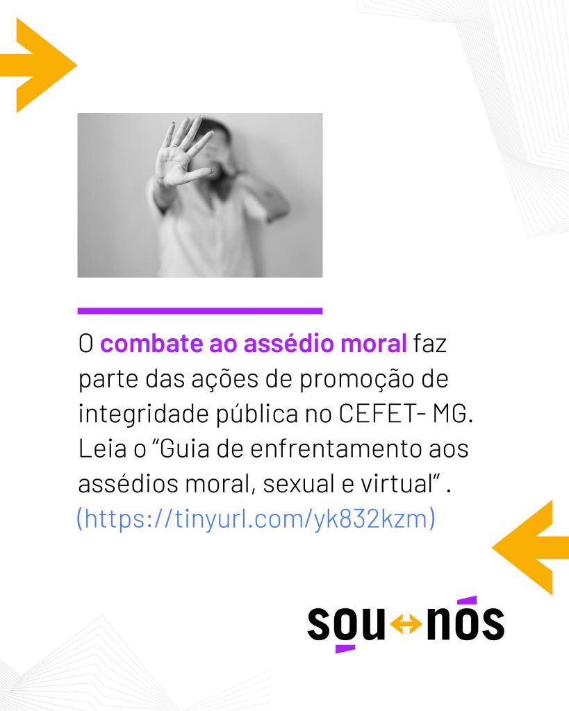 Aproveite e conheça também os nossos Guias de Enfrentamento ao Assédio, que apresentam informações e orientações práticas sobre como identificar, prevenir e combater o assédio moral em todas as suas formas no CEFET-MG.