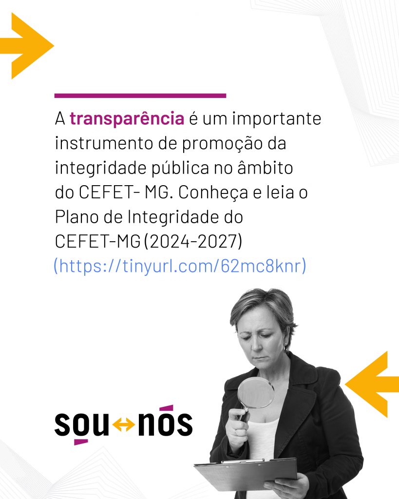 Se ainda não conhece, vale a pena conferir o trabalho da Auditoria Interna do CEFET-MG. Conheça também as ações que reforçam o compromisso da instituição com a ética e a transparência, por meio da campanha de Integridade Pública do CEFET-MG.